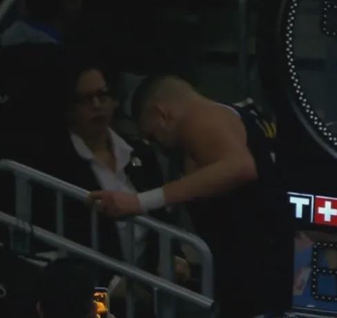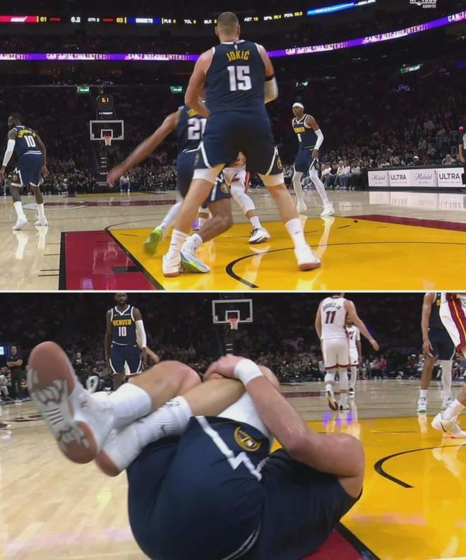 次节末约基奇被队友误伤,疑似膝盖过度伸展,直接退出了比赛,最终123-147不敌热火。