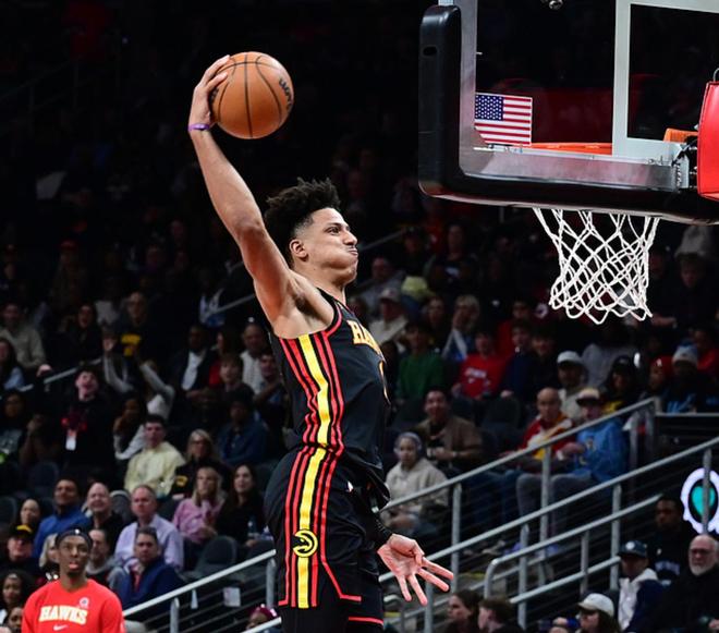 老鹰的约翰逊表现出色,老鹰主场迎战森林狼,老鹰少了特雷杨,森林狼主力俱在,老鹰优势很大,全场压制森林狼,最终大胜24分。约翰逊打了32分钟,22中15(三分6中3),1罚1中,砍下34分10板6助2断1帽。