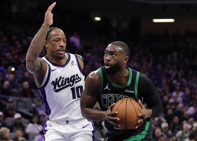 国王主场迎战凯尔特人,国王少了小萨、拉文,凯尔特人少了塔图姆,前三节比赛双方旗鼓相当,三节战罢战成平手,第四节凯尔特人展现优势,单节赢了14分,最终凯尔特人以14分优势拿下比赛。布朗25中11得到29分10板4助,怀特13中5得到16分5板7助2帽,国王方面德罗赞16中9得到25分5板6助,施罗德12中7得到18分3板7助。