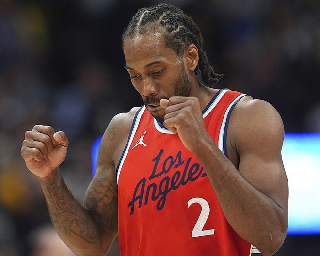 55分后45分,伦纳德打疯了,打成联盟第一,给他1.5亿是有原因的