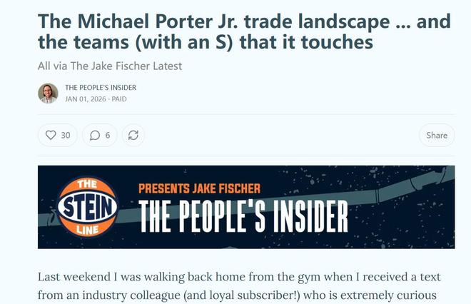 名记Jake Fischer则曝出,勇士队内部已经就交易小波特进行过讨论,将其视作合理的补强候选。