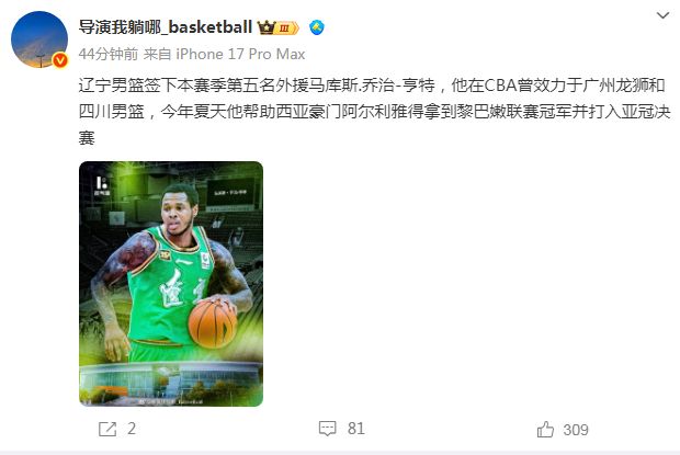 如今根据媒体人导演我躺哪_basketball报道:“辽宁男篮签下本赛季第五名外援马库斯-乔治-亨特,他在CBA曾效力过广州男篮和四川男篮,今年夏天他帮助西亚豪门阿尔利雅得拿到黎巴嫩联赛冠军,并打入亚冠决赛