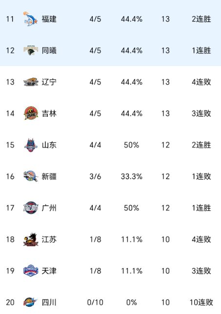作为昔日总冠军,四川队依然一胜难求,也是唯一一支开局9轮全败的球队,稳居倒数第一的位置,反观青岛队7胜2负排名第五。