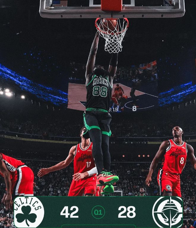 首节比赛,凯尔特人砍下42分,创造本赛季首节得分新高纪录,其中杰伦-布朗7中5得到13分2助攻,怀特三分5中3砍下14分4助攻。