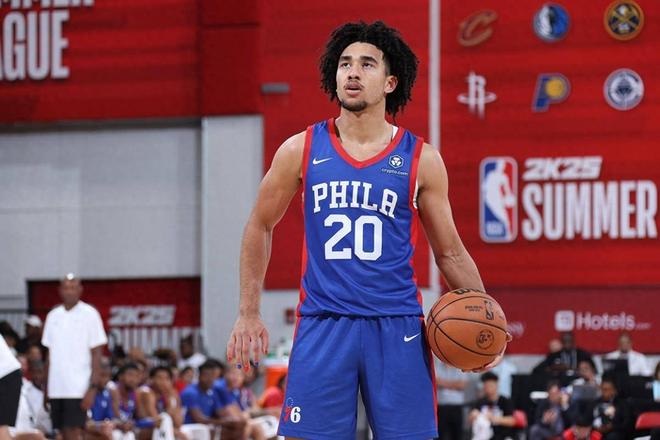 不过,令人没有想到的是,虽然2024年是一个选秀小年,但麦凯恩一直到首轮的第16顺位方才被选中,不仅没有进入选秀的前五,甚至乐透区都未能入选。而这很大程度上,还是因为他的身体素质太过薄弱,防守端较为一般的潜力,让很多球队望而却步。不过,在76人队的眼中,麦凯恩却是一个非常优秀的胚子,所以他们将他带到了费城。