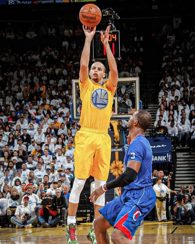 15-16赛季常规赛是库里的巅峰,他带队拿下了73胜,全票当选了MVP,在圣诞大战上库里一度因伤去更衣室治疗,整场比赛他15投6中,三分4中1,罚球6中6得到19分7篮板7助攻2抢断3失误。