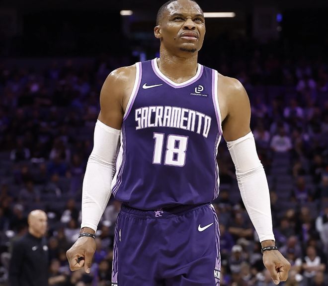 全场比赛威少打了31分钟,15中4、三分7中1只拿到11分6板4助3失误的表现,发挥确实不能说好,消耗了大量的球权,出手数量全队前三,结果得分只排在了队伍的并列第4名。关键是最后时刻威少的一攻一防,终于生动形象地展现出了他是如何从一个曾经的超级巨星,变成一个现在只能够在国王这种烂队当主力的球员的。