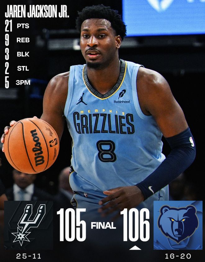 西部第十的灰熊爆冷击败了西部第二的马刺,这场比赛马刺一度领先灰熊11分,而且文班亚马复出爆砍30分5篮板3助攻(21分钟),没想到马刺吞下了一场非常惨烈的失利,决胜时刻马刺全队哑火,被卡姆-斯潘塞一个25岁的小后卫吊打。