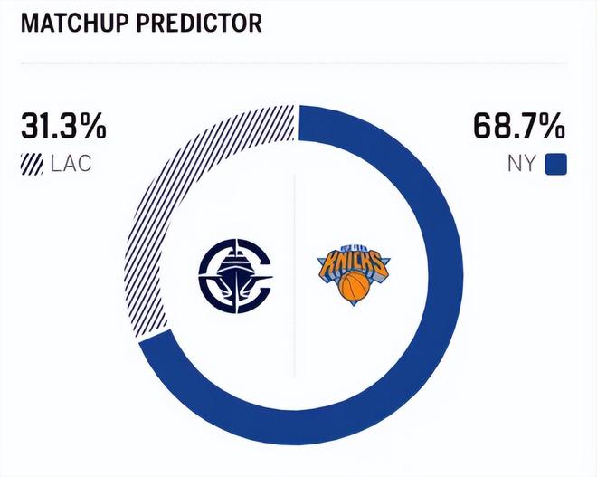 赛前,美媒ESPN对本场比赛进行了胜率预测,尼克斯胜率高达68.7% ,快船胜率则仅有31.3%,依旧不被外界看好。
