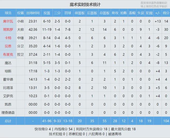 值得一提的是,这两记三分都是打板命中的。班凯罗此役三分4中1,只进了这最后一个。今天班凯罗投篮19中11,三分球4中1,罚球8中7,砍下30分14篮板6助攻9失误,正负值-3。本赛季班凯罗表现不佳,这次绝杀算是自我救赎!