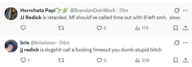 雷迪克详细的采访是这样,他的经典甩锅言论:我换上一名替补球员时我们还在讨论,我知道应该来一个短暂停,我感觉只需要2秒就可以喊出暂停,那时候我们还有16秒,但他们没有听到我的指令,本赛季已经发生了三次这样的情况,但是我理解这种情况,在多伦多我们因此赢了一场球,但这场比赛我觉得我应该担责。