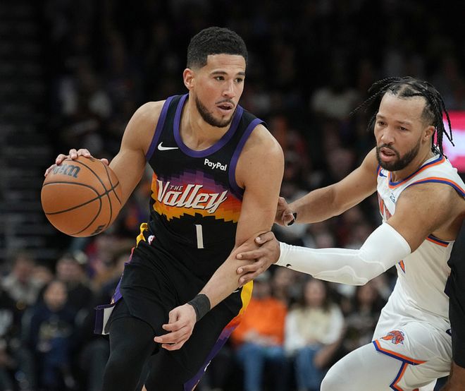 太阳主场迎战尼克斯,太阳缺少了杰伦格林,尼克斯缺少了哈特,首节比赛太阳取得5分领先,第二节尼克斯追回3分,第三节太阳再次占据上风,三节战罢领先8分,第四节尼克斯追回3分,最终太阳以5分优势赢下比赛。布克23中10(三分6中4)得到31分3板8助,狄龙15中8(三分9中5)得到27分7板5助,尼克斯方面布伦森19中9(三分10中5)得到27分3板5助,唐斯11中5得到15分12板5助。