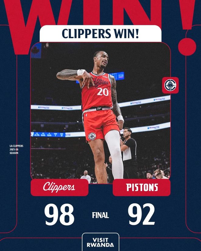 常规赛,快船客场98-92战胜活塞。