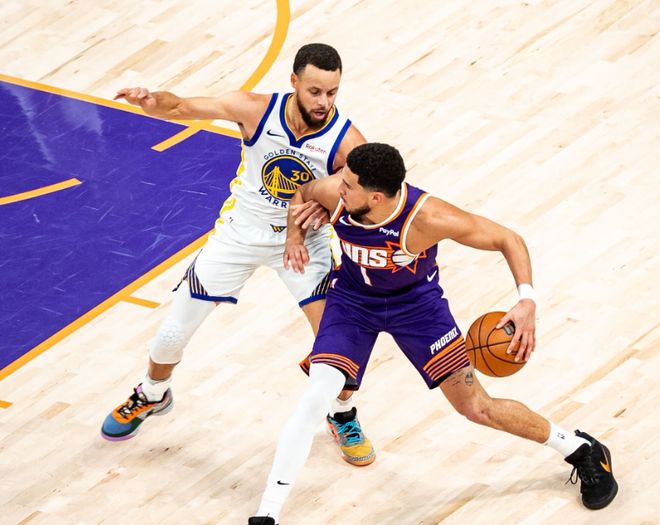 数据不会说谎。本赛季太阳进攻效率116.0联盟第12,防守效率113.5联盟第8,净效率值+2.5联盟第9。不算特别突出,但真没有短板,而且场均限制对手得分只有112.3分,联盟第6!有几个数据体现这支太阳的特质,首先场均10.4次抢断联盟第1,利用对手失误得分21.8分联盟第2,场均12.9个进攻篮板联盟第5!休赛期买断了比尔的1亿美元剩余合同,送走杜兰特,换来了布鲁克斯+杰伦格林+首轮签选中马鲁阿奇,杰伦格林长时间养伤,马鲁阿奇和杨瀚森处境相似,球队小透明,那就相当于狄龙布鲁克斯平替杜兰特,球队就起飞了?