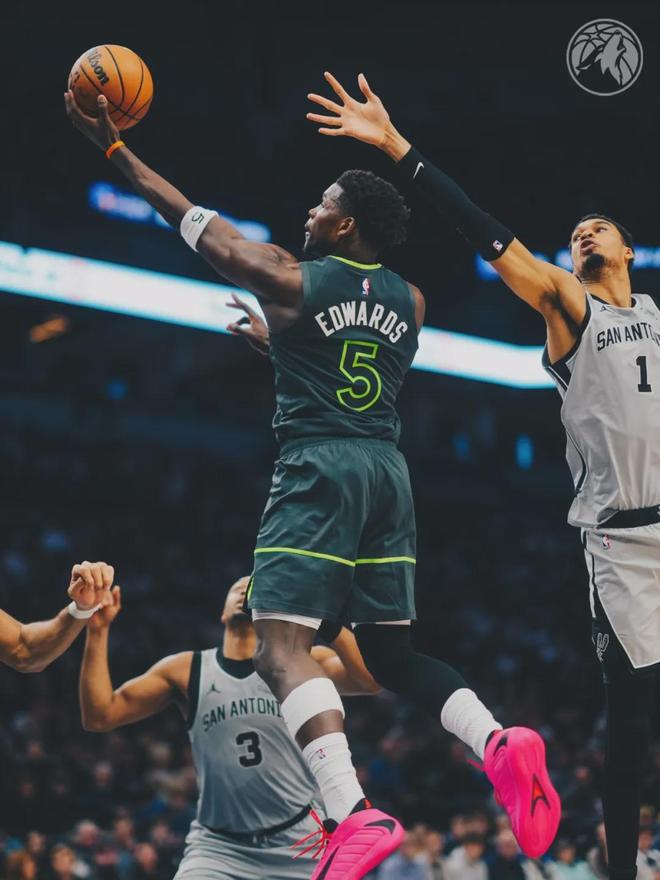 文班不敢发力,兰德尔主动贴防文班,造成后者出界失误。兰德尔丝毫不怵文班,利用突破造成文班第5犯,比赛最后4分钟,森林狼追到2分。戈贝尔重新登场,直接对文班无球犯规,马刺1罚1掷。森林狼换下戈贝尔,启用小个阵容。