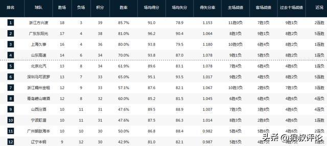 CBA积分榜最新排名出炉!广厦第1辽篮第12:山西已跌出前八?