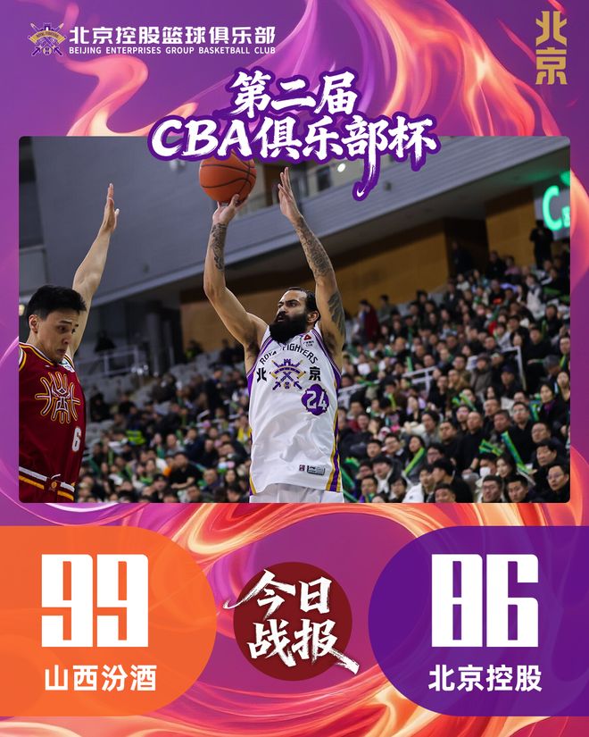 2月7日,北控男篮在第二届CBA俱乐部杯四分之一决赛上迎战山西男篮。半场结束时球队曾一度领先4分,但下半场遭遇对手反扑,最终以86:99不敌山西队,止步俱乐部杯八强。
