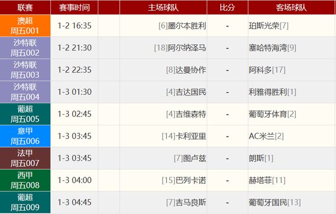 其他赛事比分: