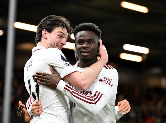 在顶住对手半场结束前的压制后,阿森纳下半场回来后也成功改变了局势;第54分钟,廷贝尔后场长传,哲凯赖什持球被断,厄德高二点回敲,赖斯弧顶处拍马赶到迎球推射命中,2:1!反超比分后,阿尔特塔立马换上了萨卡,热苏斯等人继续进攻。第71分钟,阿森纳右路传切配合,萨卡倒三角回传,赖斯推射再下一城,3:1!身价1.2亿的赖斯成功梅开二度,本赛季已经斩获了4球5助攻。