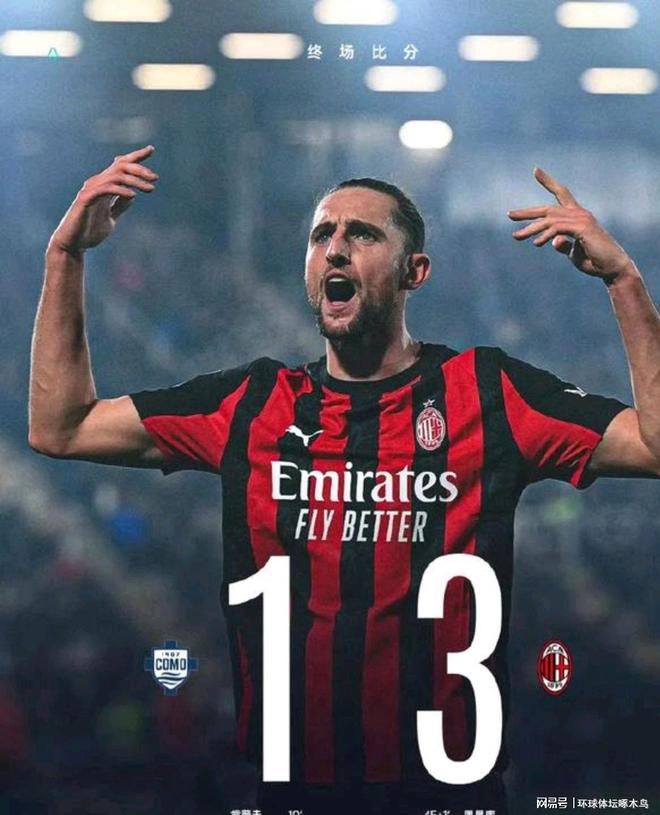 意甲第16轮:科莫主场1-3不敌AC米兰 红黑军团紧追国米