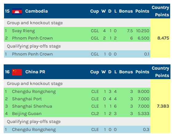 中超亚冠技术分再创新低:跌至东亚第10 被柬埔寨联赛反超